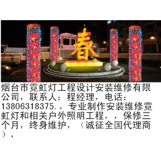煙臺市霓虹燈工程設(shè)計安裝維修有限公司,聯(lián)系人:程經(jīng)理,電話:13806318375.,專業(yè)制作安裝維修霓虹燈和相關(guān)戶外照明工程,,保修三個月,終身維護,(誠征全國代理商),專業(yè)從事商業(yè)門面,招牌、街道景觀的整體設(shè)計。設(shè)計制作安裝噴繪廣告牌,燈箱,LED燈飾,霓虹燈,電子顯示屏,單立柱,樓體光亮工程等等,是戶外視頻專業(yè)制作安裝公司。.更多詳情,登陸:公司博客:http://blog.sina.com.cn/yantainihong1。煙臺市霓虹燈工程設(shè)計安裝維修有限公司在威海市區(qū),文登區(qū),榮成市,乳山市及煙臺芝罘、福山、牟平、萊山4個區(qū)及長島縣,龍口、萊陽、萊州、蓬萊、招遠、棲霞、海陽,,青島,濰坊,淄博,濟南等地制作安裝了大量優(yōu)質(zhì)的戶外照明廣告牌,獲得客戶們的贊譽和褒獎。我公司注重將嶄新的照明科技產(chǎn)品運用到工程當中,設(shè)計突出客戶行業(yè)特點,起到很好的宣傳效果,突出了客戶正面形象,為客戶們帶來良好的廣告效果和經(jīng)濟效益。霓虹燈是戶外廣告的主要形式之一,為企業(yè)和單位主體建筑在夜幕中增加色彩和動感,展現(xiàn)公司企業(yè)積極向上開拓進取的精神風貌,時代感強烈。同時為所在街道的夜晚增加靚麗的風景,特別是重大節(jié)慶日的夜晚,更能體現(xiàn)會說話,有感情的建筑。裝飾霓虹燈時,設(shè)計安裝的畫面體現(xiàn)公司,單位性質(zhì)可以很好的提升企業(yè)形象,為客戶留下深刻的印象,為擴大業(yè)務(wù)打下良好的基礎(chǔ)。, 霓虹燈一般分兩大類: 1、靜態(tài)燈,顏色固定,各部分不變化;