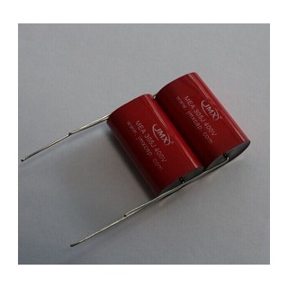 產(chǎn)品結(jié)構(gòu):CBB20紅色音響功放電容器為無(wú)感結(jié)構(gòu),用金屬化聚丙烯膜作電介質(zhì)/電極繞制而成,引線采用鍍錫銅包鋼線,外層用聚酯膠帶包裹,兩端灌注環(huán)氧樹脂。