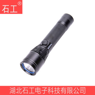 4、強光巡檢手電筒|JW7632|Ф38×160mm|功率5W 容量2600mAh設(shè)有強光、工作光、頻閃三種工作模式,采用芯片控制開關(guān),4段式電量顯示,25%每格電量增減,并具有低電壓警示和自動低電保護功能。