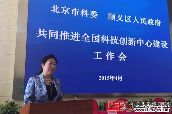 2015年4月22日,“北京市科委與順義區(qū)政府共同推進全國科技創(chuàng)新中心建設(shè)工作會”在北京市科委召開??萍疾扛咝滤靖彼鹃L曹國英、市科委主任閆傲霜、順義區(qū)區(qū)長、天竺綜保區(qū)管委會主任盧映川、國家半導體照明工程研發(fā)及產(chǎn)業(yè)聯(lián)盟秘書長吳玲等出席了會議,會議由市科委委員劉暉主持。京津冀三地的相關(guān)政府、行業(yè)組織、企業(yè)、研究機構(gòu)及新聞媒體代表等一百余人參加了此次會議。