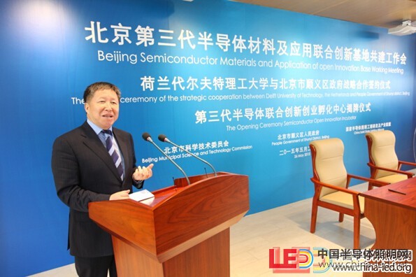 科技部副部長(zhǎng)曹健林指出,第三代半導(dǎo)體材料是科技部考慮的一個(gè)國(guó)家重點(diǎn)領(lǐng)域。創(chuàng)新聯(lián)盟建設(shè)也是科技部抓的重點(diǎn)工作,我們?cè)谥袊?guó)很多行業(yè)里組織了一百多聯(lián)盟,又在一百多聯(lián)盟的基礎(chǔ)上組織聯(lián)盟的聯(lián)盟,吳玲女士就是這聯(lián)盟的理事長(zhǎng)。在中國(guó)改革開放初期,發(fā)達(dá)國(guó)家一些現(xiàn)成性技術(shù)拿到中國(guó)來以后就可以解決很多問題。但是隨著中國(guó)的發(fā)展,今天中國(guó)面臨的技術(shù)問題也已經(jīng)走到世界的前列,更何況中國(guó)已經(jīng)是世界上最大的經(jīng)濟(jì)體系,我們也應(yīng)該與全世界的同行共同來解決面臨的問題,而且,我們也相信解決了這些問題,不僅僅是為中國(guó),也是為全世界科學(xué)技術(shù)工作做出巨大的推動(dòng)。因此,今天支持科技合作的形式發(fā)生了很大的轉(zhuǎn)變,我們的重點(diǎn)就是支持像荷蘭代爾夫特理工大學(xué)與順義區(qū)政府共建實(shí)驗(yàn)室一樣,吸引全世界的科學(xué)家到我們這里來一起工作,一起解決中國(guó)和世界所共同面臨的問題。隨著聯(lián)合創(chuàng)新基地的建設(shè),科技部將繼續(xù)對(duì)技術(shù)和模式的創(chuàng)新成果給予支持。當(dāng)然對(duì)基地來說能夠?yàn)榭茖W(xué)家提供什么樣的科研環(huán)境和條件非常重要,今天的中國(guó)到處都在支持創(chuàng)新、鼓勵(lì)創(chuàng)新,都在創(chuàng)造良好的科學(xué)技術(shù)以及高新產(chǎn)業(yè)、新興產(chǎn)業(yè)發(fā)展的條件,大家在競(jìng)爭(zhēng),我們也樂于看到這些競(jìng)爭(zhēng),我們始終是愿意支持那些走在競(jìng)爭(zhēng)前列的科學(xué)技術(shù)項(xiàng)目。代爾夫特理工大學(xué)不僅有半導(dǎo)體技術(shù)、還有空間技術(shù)、航空技術(shù)、新能源技術(shù)、智能電網(wǎng)等等,我們也希望看到在北京順義的合作基地用半導(dǎo)體照明或者說固體照明技術(shù)開始,不斷的有技術(shù)走到這里來,也從這里不斷的走向全國(guó),也祝愿這個(gè)聯(lián)合創(chuàng)新基地能越來越好。