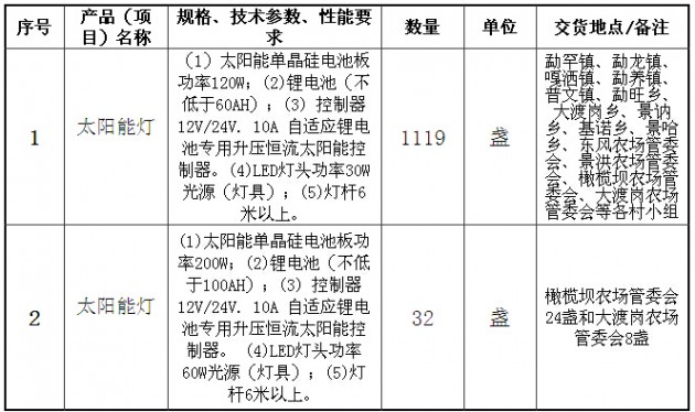 1、項目名稱:景洪市農(nóng)村綜合改革領(lǐng)導小組辦公室2015年村級公益事業(yè)建設(shè)一事一議財政獎補普惠制資金太陽能路燈采購項目(二次)