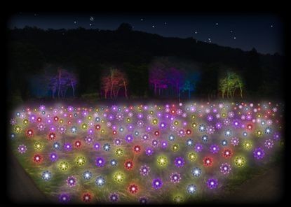 APA Resort上越妙高渡假村采用2.7萬盞太陽能LED來打造夜間的空中花園,每個LED燈都配有一片太陽能板、40mAh的電池、以及星形的LED燈。在日間照射陽光后,每個太陽能LED燈夜間可發(fā)亮4~5小時,且會自動偵測日光的變化,在進入夜晚之際自動點亮。