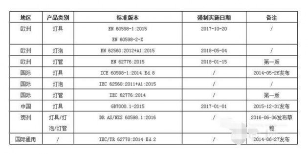 藍(lán)光危害評估涉及標(biāo)準(zhǔn)及實施日期