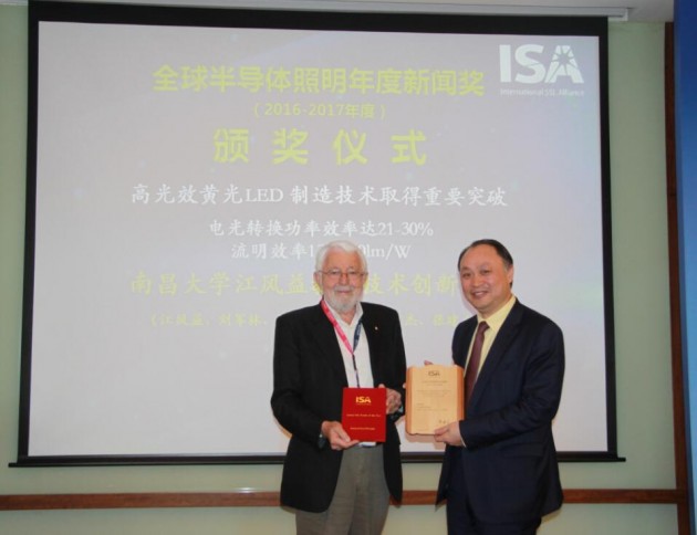 由國際半導(dǎo)體照明聯(lián)盟(ISA)組織評(píng)選的“全球半導(dǎo)體照明年度新聞(2016-2017)” 揭曉:“高光效黃光LED制造技術(shù)取得重要突破,光電轉(zhuǎn)換功率效率達(dá)21-30%,流明效率130-180lm/W”及“13家公司60億 LED 照明產(chǎn)品銷售新承諾,提高能效,減少碳排放,積極應(yīng)對(duì)全球氣候變化”作為本年度新聞事件入選,頒獎(jiǎng)儀式于11月1日上午在國際半導(dǎo)體照明聯(lián)盟(ISA)2017 年成員大會(huì)上舉行。