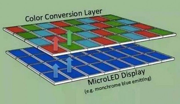 當(dāng)前micro-LED的應(yīng)用方向主要集中于亮點(diǎn),其一是大尺寸顯示應(yīng)用,如索尼的小間距大尺寸高分辨率室內(nèi)/室外顯示屏,三星計(jì)劃于2018年推出的150英寸micro-LED電視等。其二是以VR設(shè)備、智能穿戴為核心的小尺寸設(shè)備,如蘋果公司的Apple Watch。