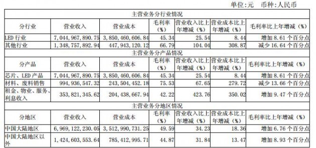 4月19日晚間,三安光電公布2017年年報(bào),報(bào)告期內(nèi),實(shí)現(xiàn)銷(xiāo)售收入83.94億元、營(yíng)業(yè)利潤(rùn)38.56億元、歸屬于母公司股東的凈利潤(rùn)31.64億元,與上年同期相比,銷(xiāo)售收入增長(zhǎng)了33.82%、營(yíng)業(yè)利潤(rùn)增長(zhǎng)82.50%、歸屬于母公司股東的凈利潤(rùn)增長(zhǎng)了46.04%。本公司及子公司主要經(jīng)營(yíng)LED芯片及應(yīng)用品研發(fā)、生產(chǎn)、銷(xiāo)售等。