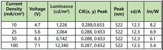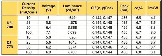 在OLED材料方面,Doosan電子材料生產(chǎn)紅色、綠色、藍(lán)色的EML材料,以及HIL、HTL、ETL材料。其產(chǎn)品性能如下。
