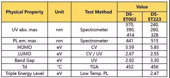 用作蒸鍍低分子OLED的電子傳輸層的材料,電子移動(dòng)和能級(jí)特性?xún)?yōu)良,可以低壓驅(qū)動(dòng)、效率高、壽命長(zhǎng)。同時(shí)可以根據(jù)客戶(hù)公司的面板結(jié)構(gòu)優(yōu)化設(shè)計(jì)并量產(chǎn)。有DS-700、DS-773、DS-ET002、DS-ET223四個(gè)系列。