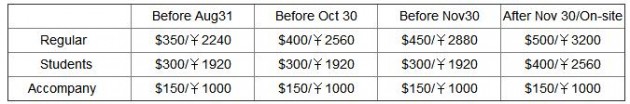 *Accompany person fee includes welcome reception, banquet,lunches and dinner.