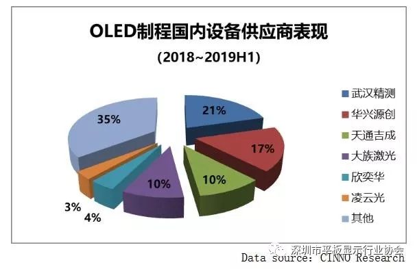 在國家政策的引導(dǎo)下,國內(nèi)設(shè)備商積極相應(yīng)并取得了一定的成果。在OLED領(lǐng)域,國產(chǎn)化設(shè)備的程度還非常低,而且如前面章節(jié)所述,技術(shù)壁壘和比重都需要努力突破。