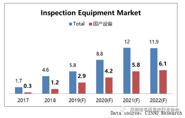 二、檢測類設(shè)備。包含光學(xué)和bonding壓痕檢測AOI,自動畫面檢測API,以及Aging和燒錄設(shè)備,如OTP,Gamma等自動化設(shè)備。從目前市場預(yù)測來看,還有超過50億的成長空間。