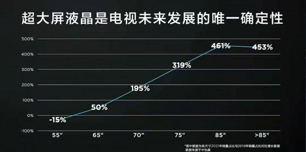 2020年,TCL首次提出超大屏戰(zhàn)略,即爭(zhēng)取在未來(lái)3年,實(shí)現(xiàn)TCL 75”+超大面板滲透率超過(guò)30%的目標(biāo)。此后,在大屏賽道,TCL實(shí)現(xiàn)了從追趕到超越,最終全球領(lǐng)先。據(jù)奧維云網(wǎng)數(shù)據(jù)顯示,2021年全年98英寸-100英寸品牌銷量排名中,TCL以22.78%的市場(chǎng)銷量占有率位居全行業(yè)第一位。中怡康最新數(shù)據(jù)進(jìn)一步顯示,2022年W1-W2期間,TCL延續(xù)了去年的優(yōu)異表現(xiàn),繼續(xù)以51.62%的線下銷量占比和50.06%的線下銷售額占比雙雙強(qiáng)勢(shì)登頂榜首。而且,TCL是目前業(yè)內(nèi)唯一一家擁有2款98英寸巨幕智屏的品牌。此次再次發(fā)布98英寸的Mini LED電視,將會(huì)讓超大尺寸的電視體驗(yàn)提升到前所未有的新高度,為高端用戶帶來(lái)更極致的音畫(huà)沉浸感。