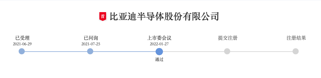 2021年6月30日,比亞迪股份有限公司在深交所發(fā)布公告稱,擬分拆所屬子公司比亞迪半導(dǎo)體股份有限公司至深交所創(chuàng)業(yè)板上市。今年1月,比亞迪半導(dǎo)體分拆上市申請(qǐng)成功過(guò)會(huì)。“分拆上市將有利于比亞迪半導(dǎo)體拓寬融資渠道、加快客戶多元化,增強(qiáng)國(guó)內(nèi)新能源汽車產(chǎn)業(yè)鏈的自主可控能力。”比亞迪方面解釋稱。