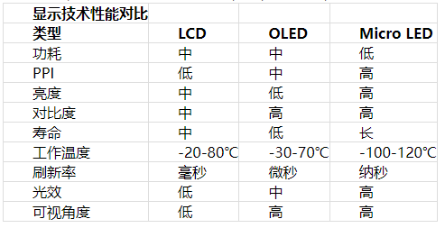 表1 Micro LED與其他主流顯示技術優(yōu)劣對比