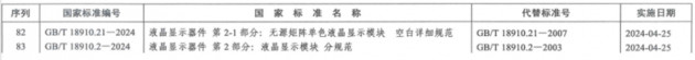 近日,國家市場監(jiān)督管理總局(國家標(biāo)準(zhǔn)化管理委員會(huì))批準(zhǔn)發(fā)布一批重要國家標(biāo)準(zhǔn),其中由天馬牽頭的兩項(xiàng)液晶顯示器件領(lǐng)域國家標(biāo)準(zhǔn)在列,分別是GB/T 18910.2-2024《液晶顯示器件 第2部分:液晶顯示模塊分規(guī)范》和GB/T 18910.21-2024 《液晶顯示器件 第2-1部分:無源矩陣單色液晶顯示模塊 空白詳細(xì)規(guī)范》,均為發(fā)布即實(shí)施的標(biāo)準(zhǔn),充分體現(xiàn)其行業(yè)重要性。