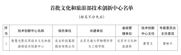 11月12日,文化和旅游部官網(wǎng)正式公布了首批文化和旅游部技術創(chuàng)新中心名單。CSA會員單位良業(yè)科技集團作為依托單位,與北京交通大學物理科學與工程學院共建的智慧光影應用技術文化和旅游部技術創(chuàng)新中心經(jīng)文化和旅游部驗收合格,被正式批準運行。