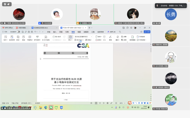 9月4日,由淮北翌光科技有限公司牽頭起草的T/CSA 107-202X《用于光治療的柔性OLED光源 最小彎曲半徑 測試方法》標準起草組第一次討論會順利召開。 固安翌光科技、清華大學、中關村半導體照明聯(lián)合創(chuàng)新重點實驗室(寬禁帶半導體超越照明材料與技術全國重點實驗室)、民爆光電、東莞質(zhì)檢中心、北大東莞光電院、華普永明、廈門質(zhì)檢院、英特來等單位以及CSA標委會秘書處10余名專家代表參會。